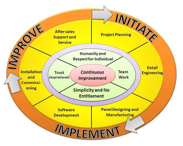 Project Management is an art as well as science. The strength of good management lies in experience and innovation. Sterling Technologies works on powerful management framework which helps us to learn and improve with each opportunity. We continuously try to improve our performance by working thoroughly on Project requirements, Detail Engineering, Software Design, Panel Design, System Development and testing. Our management framework is described in brief below,